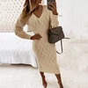Robe longue en tricot pour femme, col en v, tenue de bureau élégante, manches lanternes, Slim, automne hiver