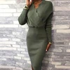 Robe moulante à manches longues pour femme, tenue de soirée élégante, moulante, tricotée, Sexy, col en v, couleur unie, automne hiver