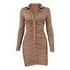 SRUBY – robe chemise plissée à manches longues, simple boutonnage, extensible, à revers, Mini robe pour femmes, automne 2021