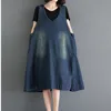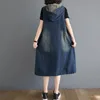 Robe en Jean à capuche pour femmes, ample, décontractée, rétro, Maxi, tenue d'été en Jean, Harajuku