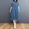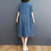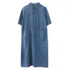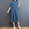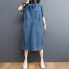 Robe longue en Denim pour femmes, grande taille, rétro, manches courtes, couleur unie, Maxi, tenue d'été, ample, chemise en Denim