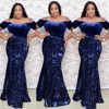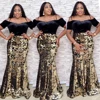 MD – Robe de soirée en velours pour femmes, style sirène africaine, paillettes, épaules dénudées, Sexy, longue, Robe portefeuille, vêtements de fête, nouvelle collection, 2021