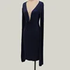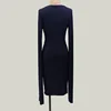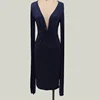 Robe polyvalente mi longue, manches longues, bleu marine, Simple, décontractée, élégante, décolleté en v profond, collection automne et hiver