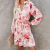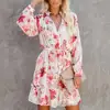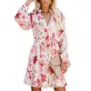 Robes à manches longues et col en v pour femmes, décontracté, à la mode, rose, taille fine, bureau, grande taille, collection automne 2021