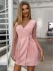 SRUBY – robe portefeuille en maille rose, manches, Double bouton, tenue de bureau, Blazer élégant, col en v, robe de soirée de noël, hiver