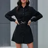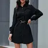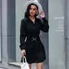 Mini robe à manches longues et col rabattu pour femmes, tenue élégante à bandes, décontractée, nouvelle mode, printemps, 2022