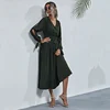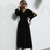 Robes plissées à manches longues pour femmes, tenue de soirée élégante avec col en V, nouvelle collection printemps automne 2022