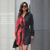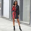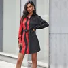 Mini robe à manches longues pour femmes, col rabattu, mode élégante, taille haute, bretelles, Patchwork, automne