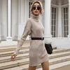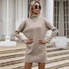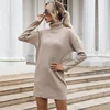 Robe élégante pour femmes, couleur Pure, pull tricoté, Mini, décontracté, col roulé, printemps automne