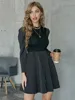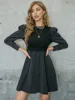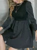 SRUBY – robe à manches longues pour femmes, Patchwork, rayures amples, col rond, moulante, fermeture éclair, Empire, tenue décontractée pour le bureau