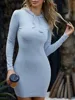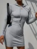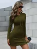 SRUBY – robe sweat shirt moulante, couleur unie, cordon de serrage, vert, élégante, mi longue, manches longues, Slim, hiver