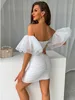 SRUBY – robe de couleur Pure pour femmes, Sexy, plissée, maille, manches bouffantes, serrée, hanche enveloppée, jupe, nouvelle collection automne 2021