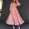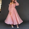 Robe de noël à manches longues, tenue de noël élégante, col Slash, Maxi, couleur Pure, automne hiver, polyvalente