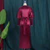 Robe longue Sexy à col en v profond pour femmes, manches lanterne, ceinture, Robe de fête de noël, élégante, fendue, printemps, 2021