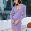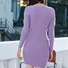Robe moulante à col en V pour femmes, Sexy, manches longues, pull Tube bleu tricoté, décontractée, mi longue, tenue de bureau, automne, 2021