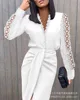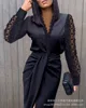 Robe en dentelle à col en v, sac à manches longues, taille de hanche, vêtements pour femmes