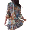Robe ample à volants en dentelle pour femmes, nouveau style, col en v, manches longues, 2022