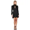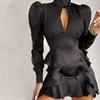 Mini robe en Satin à manches longues pour femmes, tenue de soirée Sexy, découpée, élégante, à volants, couleur unie, noir, vert, automne hiver