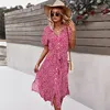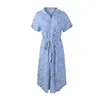 Robe à effet bandage pour femme, modèle avec manches courtes, imprimé floral et boutons, style vacances d'été, décontractée, nouvelle collection printemps 2021