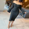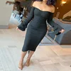 Robe pour femmes, manches évasées, épaules dénudées