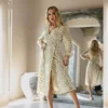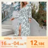Simplee – robe trapèze à lacets, élégante, imprimée feuilles vertes, Sexy, manches longues, col en v, printemps, 2021