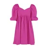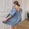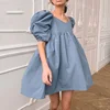 Mini robe d'été à col carré, Sexy, manches courtes, femme, taille haute, noir, ample, ligne A, manches bouffantes, bleu, coton