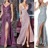 Robe de soirée moulante sans manches pour femmes, tenue élégante, couleur unie, fendue, col en v, Chic, à la mode, pour le nouvel an, 2022