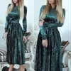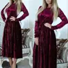 Robe de soirée en velours doré pour femme, tenue de soirée élégante à manches longues, couleur unie, mi longue, hiver