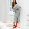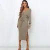 Robe Sexy pour femmes, col en v avec ceinture croisée, manches longues, pull élégant tricoté fendu, Slim, couleur unie, automne hiver S XL