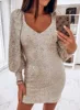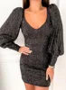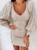 Robe de soirée à paillettes, grande taille, manches longues, tenue de club, mini, été, nouvelle collection 2022