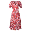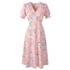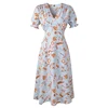 FoluxYandy – robe trapèze en mousseline de soie, mi mollet, col en V, manches courtes, taille haute, mi longue, plage, été