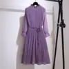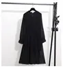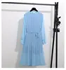 Robe plissée à fleurs en mousseline de soie, avec doublure, manches longues, col à volants, grande taille, automne