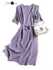Robe en soie violette pour femme, tenue légère à la taille, chemise en soie, automne 2021