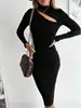 robe femme Robe moulante pour femmes, col carré, noire, élégante, en coton, mode, fendue sur le côté, Mini, basique
