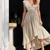 Robe en dentelle à manches courtes, col en v profond, polyvalente, décontractée, robes élégantes pour femmes, tempérament, Chic, automne
