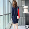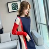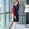 Robe tricotée à col rond et manches longues pour femme, tenue en laine à fond court, épissure, idéale pour le travail, les soirées et les déplacements, mode hiver 2021