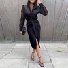 Robe de soirée en dentelle pour femmes, col en v, Sexy, élégante, mode, taille haute, mi longue, 2022
