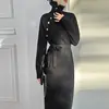 Robe longue tricotée à col de tortue pour femme, pull à col montant, de haute qualité, automne et hiver