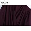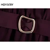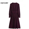 MOYATIIY – robe Midi avec ceinture pour femmes, élégante, rouge vin, taille élastique, plissée, col en v, pour mariage