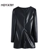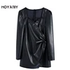 MOYATIIY – Mini robe noire en Faux cuir pour femme, tenue classique avec col en cœur et fermeture éclair au dos, nouvelle collection 2022