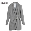Moyatiy – robe Blazer pied de poule pour femmes, tenue de bureau avec fermeture éclair latérale et ceinture, à la mode, 2022