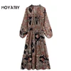 Moyatiy – robe mi longue à volants, imprimé Floral rétro, manches lanternes, taille élastique, à la mode, 2022