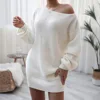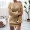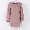 Mini robe pull tricotée à manches longues pour femmes, col unique, surdimensionnée, ample, couleur unie, automne hiver
