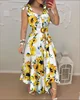 Robe d'été à lacets imprimé tournesol pour femmes, nouvelle collection 2022