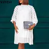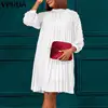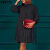 VONDA – Robe plissée à col rond pour femme, tenue élégante et décontractée, couleur unie, manches longues bouffantes, coupe trapèze