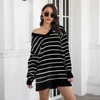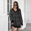 Robe pull blanche à rayures pour femmes, décontractée, mode Simple, basique, quotidien, col en V, ample, Chic, Sexy, Mini, tricotée, printemps, automne