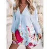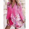 Robe ample en coton et lin à manches longues pour femmes, tenue tendance, col en v, imprimée, nouvelle collection automne 2022