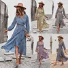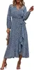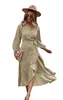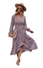 Robe portefeuille à manches longues pour femme, vêtement à col en v, imprimé floral, automne hiver