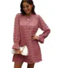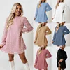 Robe brodée en mousseline de soie pour femmes, avec col en dentelle, manches bouffantes, tenue de bal, jupe, printemps automne, 2022