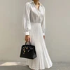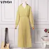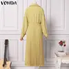 VONDA – Robe à plis pour Femme, vêtement élégant, décontracté, chemise à revers, couleur unie, tenue de bureau, surdimensionnée, automne